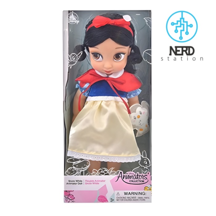عروسک سفید برفی انیماتورز دیزنی شامل یک عروسک با ارتفاع ۳۸ سانتی میباشد که در یک بستهبندی جعبه ای ۴۲ سانتیمتری قرار گرفته است که نام دیزنی بروی جعبه قابل مشاهده است. این نشان بروی جعبه نشان دهنده اصل بودن عروسک و محصول برند دیزنی است که یکی از اسباب بازیهای سری انیماتورز این کمپانی بزرگ است.